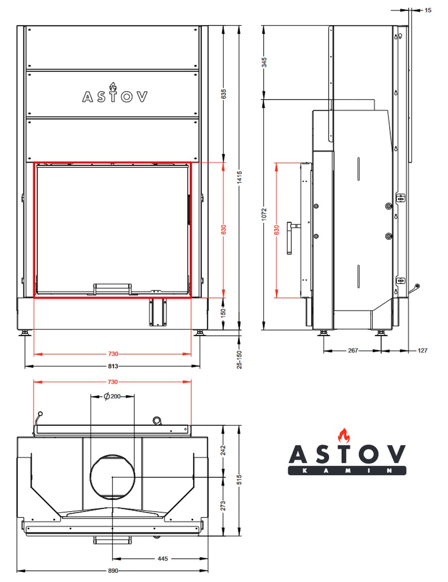 Каминная топка АСТОВ ПТ 7363 производитель Astov