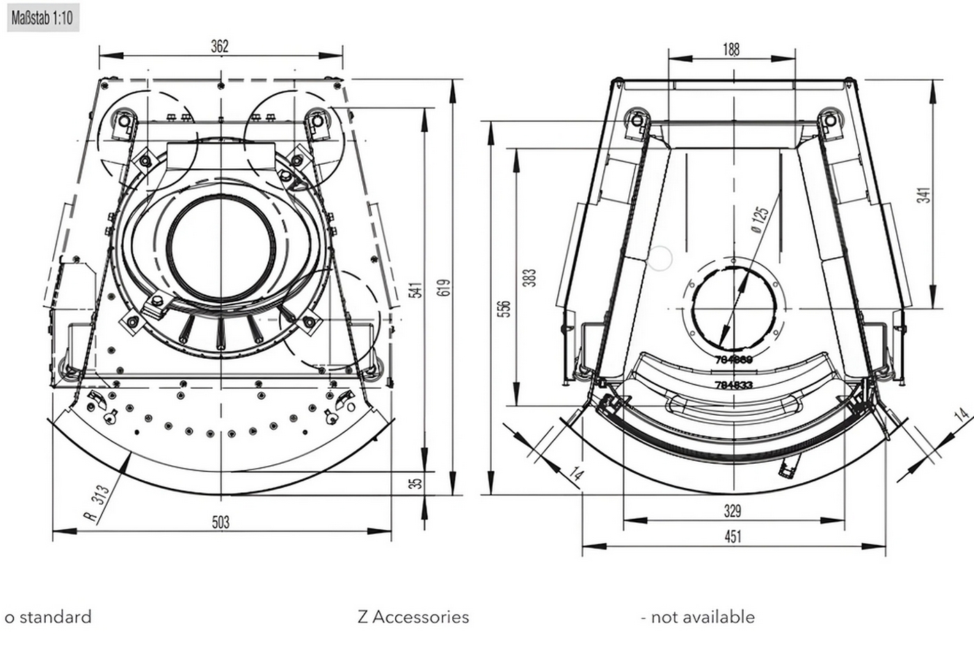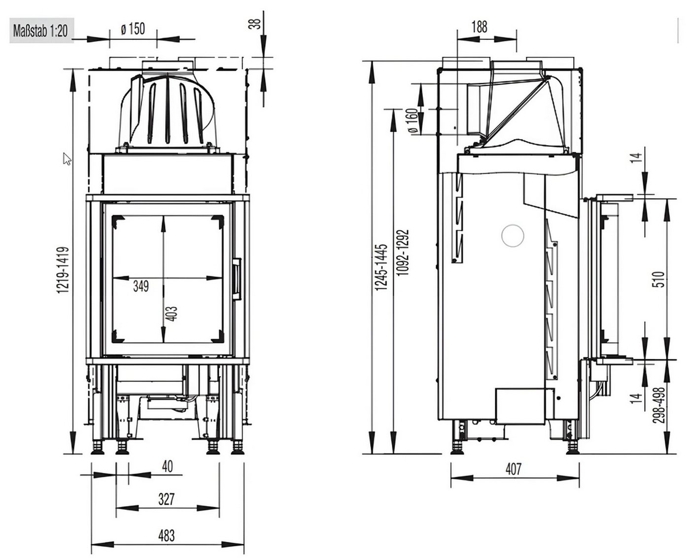 Сочетание небольших размеров (450мм x 510мм) и высокой теплоотдачи делает эту модель идеальным выбором для построения небольшой теплоемкой печи или камина. Дверца с алюминиевой ручкой может открываться как с левой, так и с правой стороны, обеспечивая удобство использования.