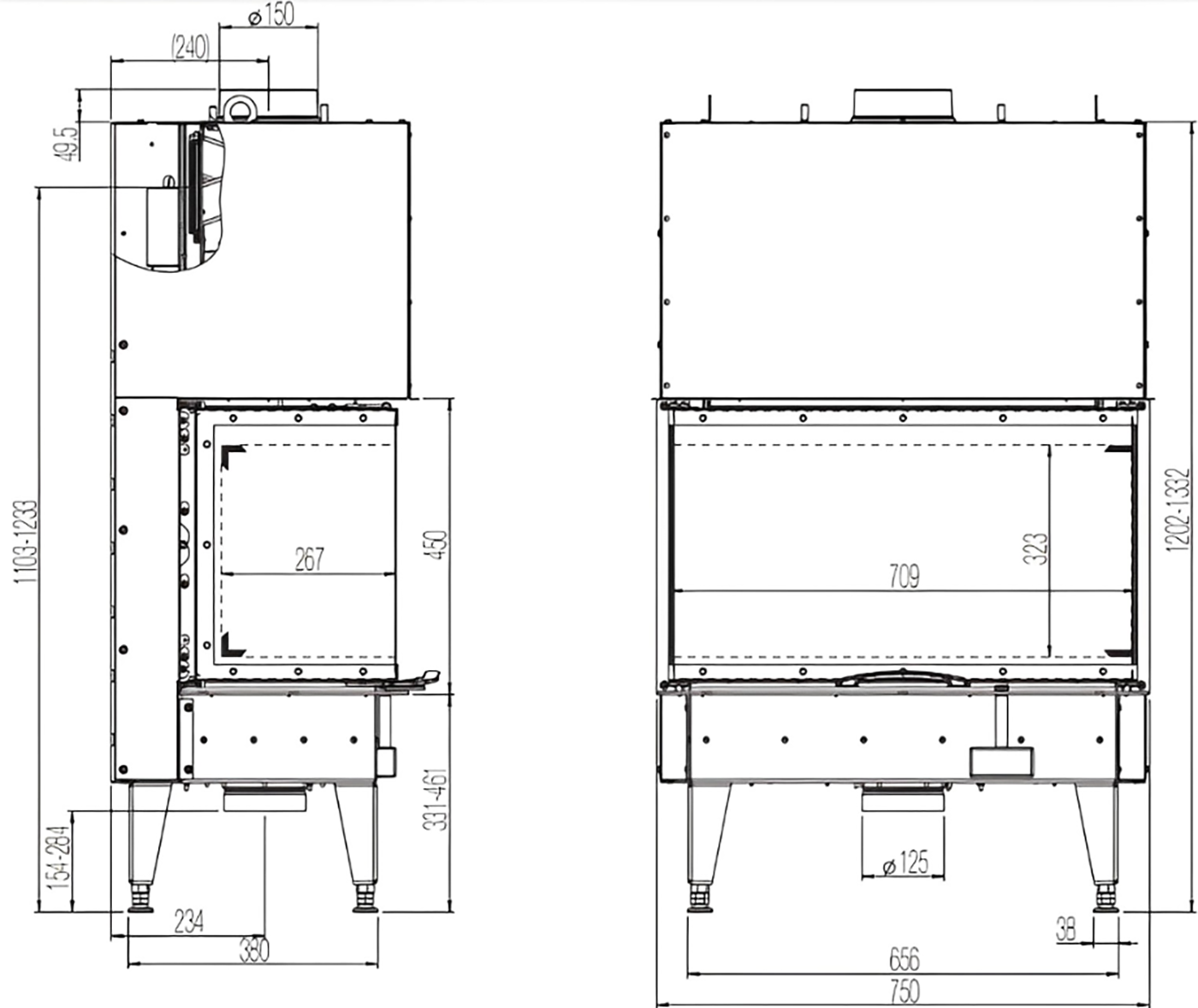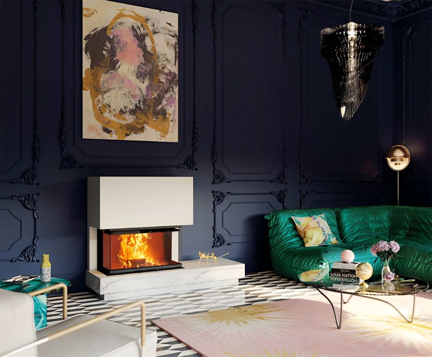 Особенностями этой каминной топки являются двойные стекла, которые эффективно ограничивают тепловое излучение через стекло, и боковое открывание для удобной очистки стекла. Опционально, внутренняя часть вставки может быть выполнена из керамотта с черным пигментом под названием Carbon, создавая эффект "выгорания сажи" на поверхности, что придает ей особую привлекательность. Бесшумный подъемный механизм версии 2.0 обеспечивает плавное и медленное закрывание двери, что добавляет комфорта и удовольствия от использования камина. Благодаря возможности установки топки низко по отношению к полу и защитному кожуху подъемного механизма, вы получаете больше свободы для реализации дизайнерских идей и размещения декоративных элементов над камином.