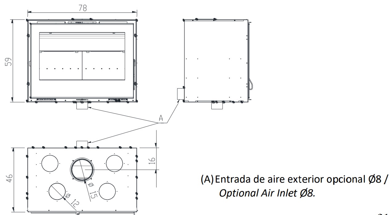 В камине реализована система двойного сгорания: больше тепла при меньшем расходе древесины и минимальных выбросах.