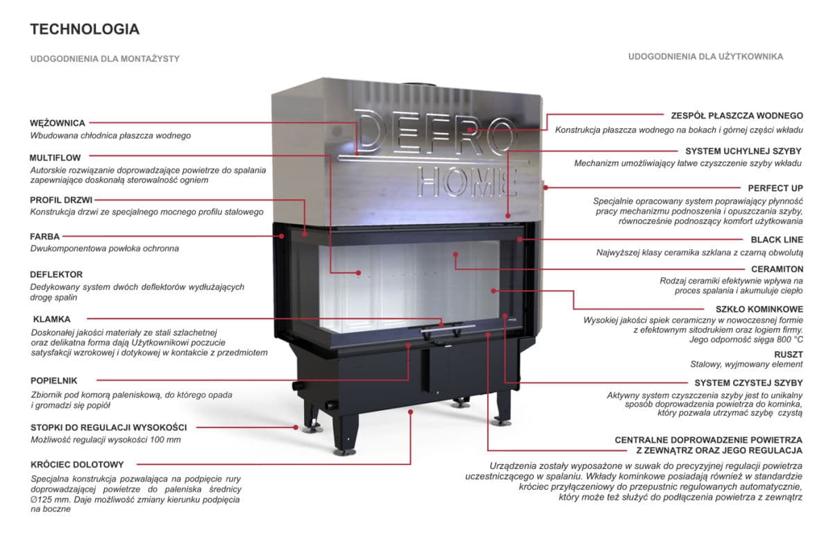 Каминная топка DEFRO HOME с водяным контуром серии RIVA с левым или правым боковым стеклом адаптированы для интенсивного горения. При горении топка передает тепло на встроенный теплообменник для нагрева воды и перенаправляет ее для использования в центральном отоплении. Из-за сезонного использования камина водяные DEFRO HOME вставки серии Riva взаимодействуют с другими источниками тепла, такими как бойлеры, печи, водонагреватели, солнечные системы, тепловые насосы. Поэтому серия каминных топок DEFRO HOME Rivaс водным контуром будут выполнять высокоэффективную работу с экономической и экологической стороны. Конструкция вставки с теплообменником в верхней части вкладыша обеспечивает идеальный комфорт горения и выгоду при использовании.