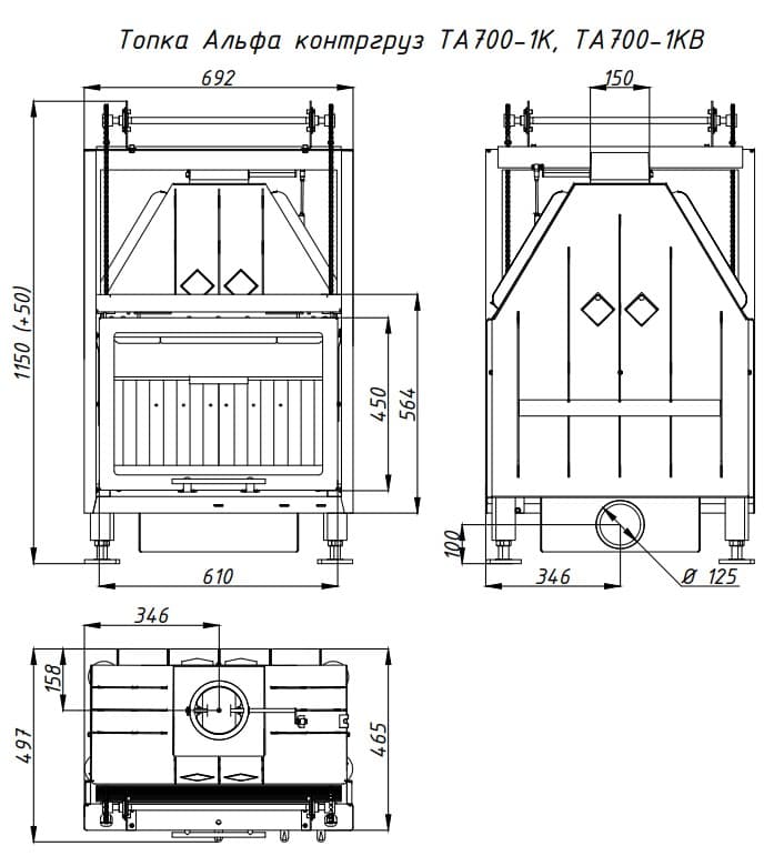Размеры Альфа 700 K Ш×В×Г: 692×1175×465 мм.