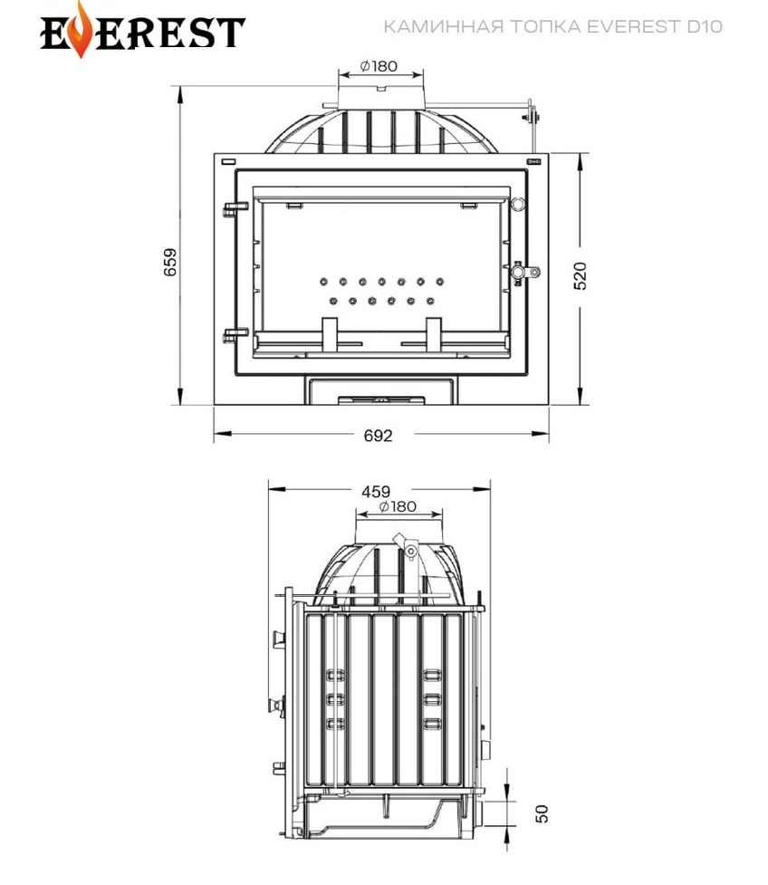 Каминная топка EVEREST D10 от Везувий эффективный отопительный прибор, способный быстро обогреть помещение. Благодаря большой каминной дверце с большой диагональю стекла в Вашем доме будет всегда уютно и тепло.