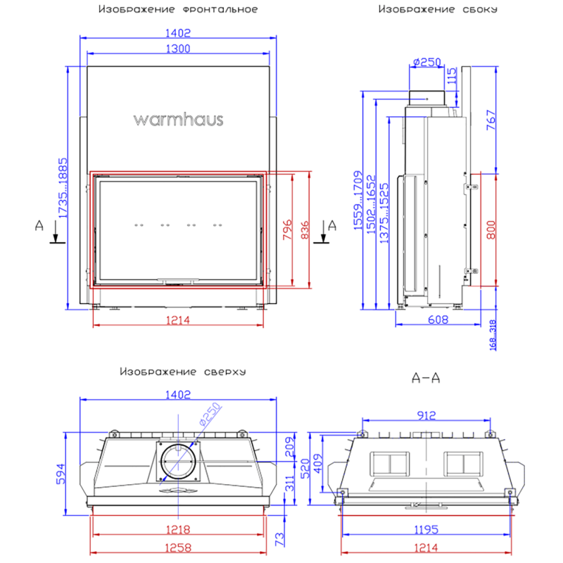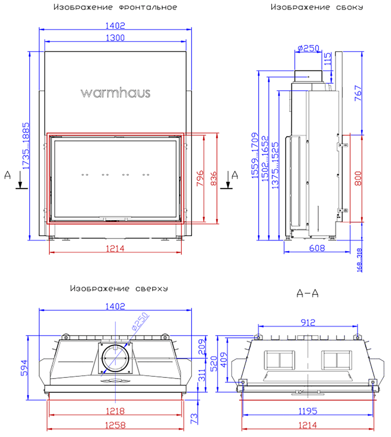 Каминная топка FLAT 120/80 производитель Warmhaus