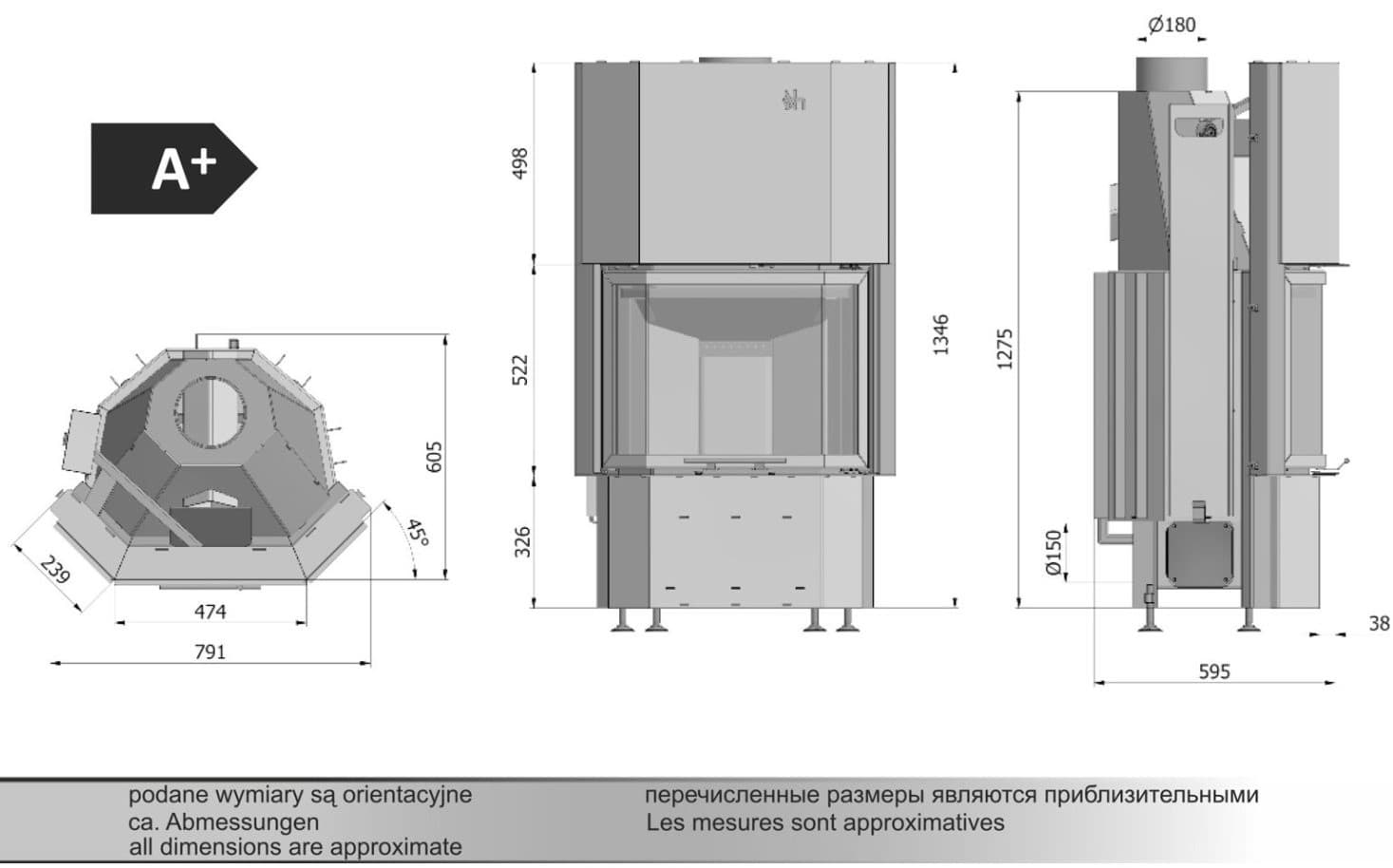 Каминная топка Hajduk Prisma Kh - это призматическая стальная топка с тройным панорамным остеклением и открытием дверцы вверх.