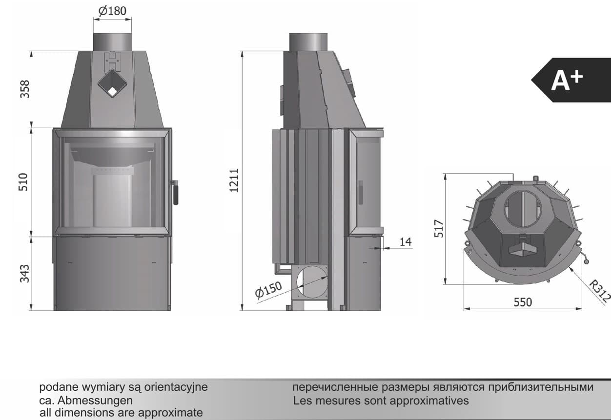 Каминная топка Hajduk Prisma MR - это призматическая стальная топка с полукруглым остеклением и открытием дверцы в сторону.