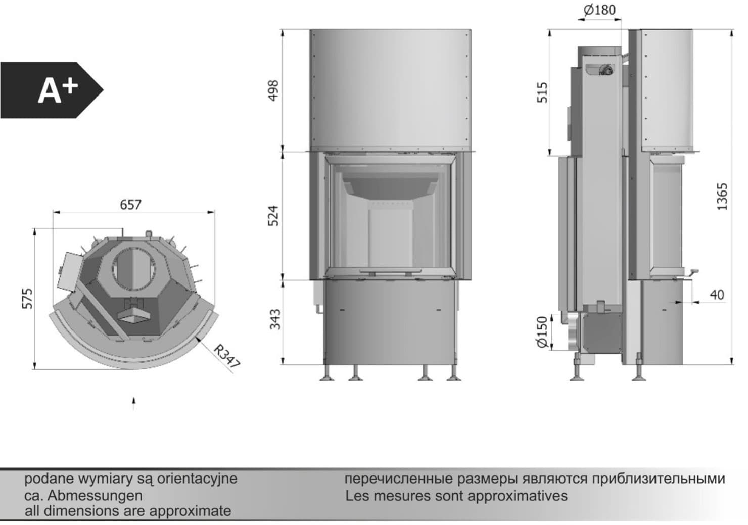 Каминная топка Hajduk Prisma MRh - это призматическая стальная топка с полукруглым остеклением и открытием дверцы вверх.