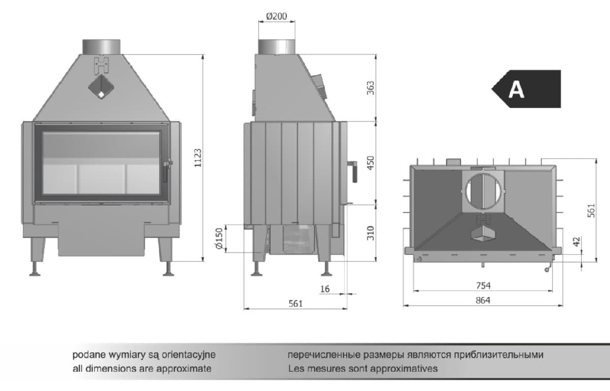 - Дно топки опущено относительно дверцы - обеспечивает место для загрузки дров и место для золы - удобство для пользователя