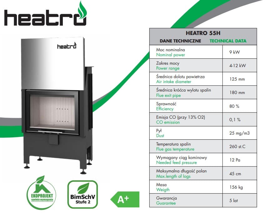 Каминная топка Heatro 55H - каминная топка из стали с накопительной керамикой и системой подъема двери. Камин имеет современное остекление "Full Glass" с элегантной ручкой для открывания из нержавеющей стали.