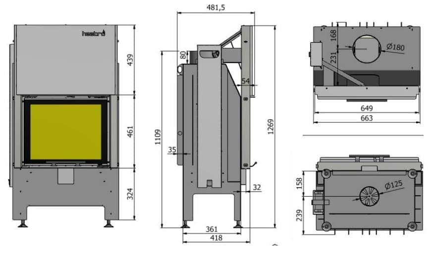- выход дымохода D-180 мм - совместим с большинством дымоходов