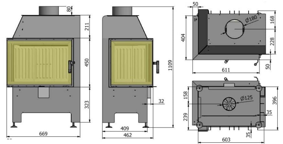 - выход дымохода D-180 мм - совместим с большинством дымоходов