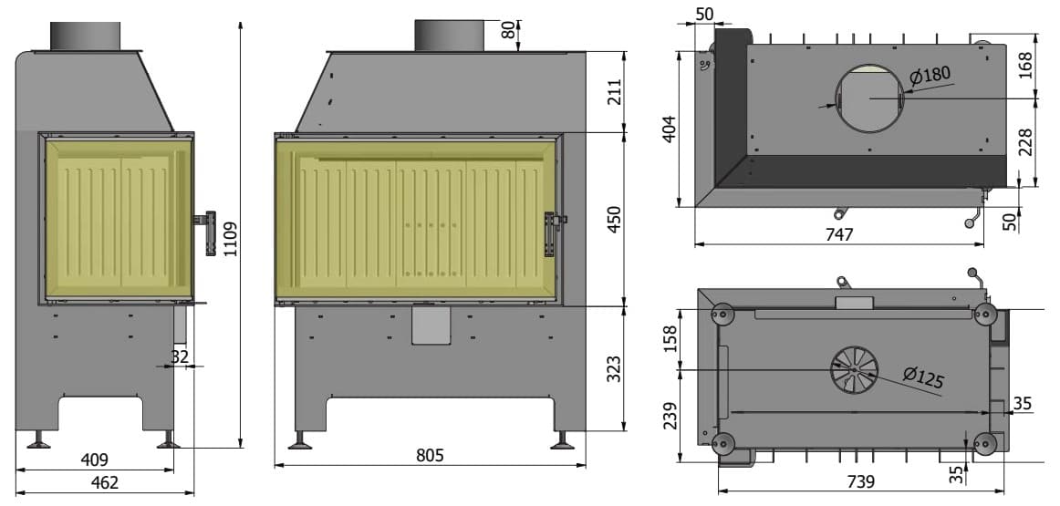 - выход дымохода D-180 мм - совместим с большинством дымоходов