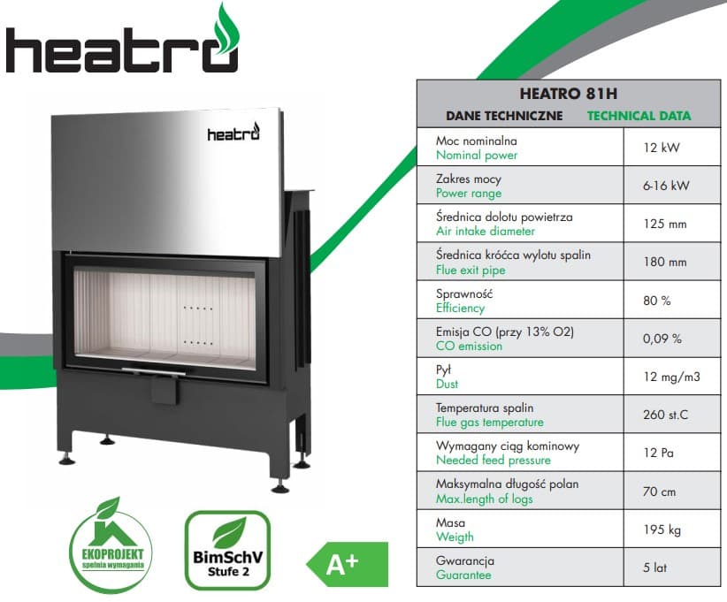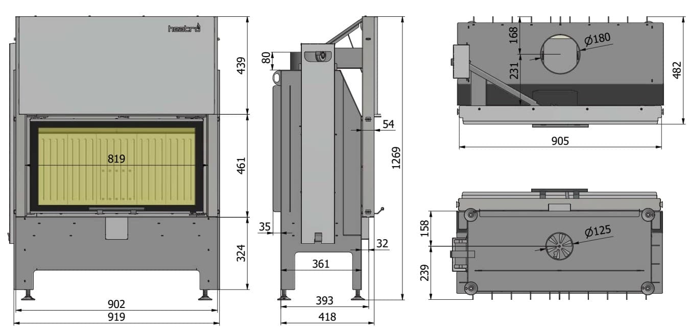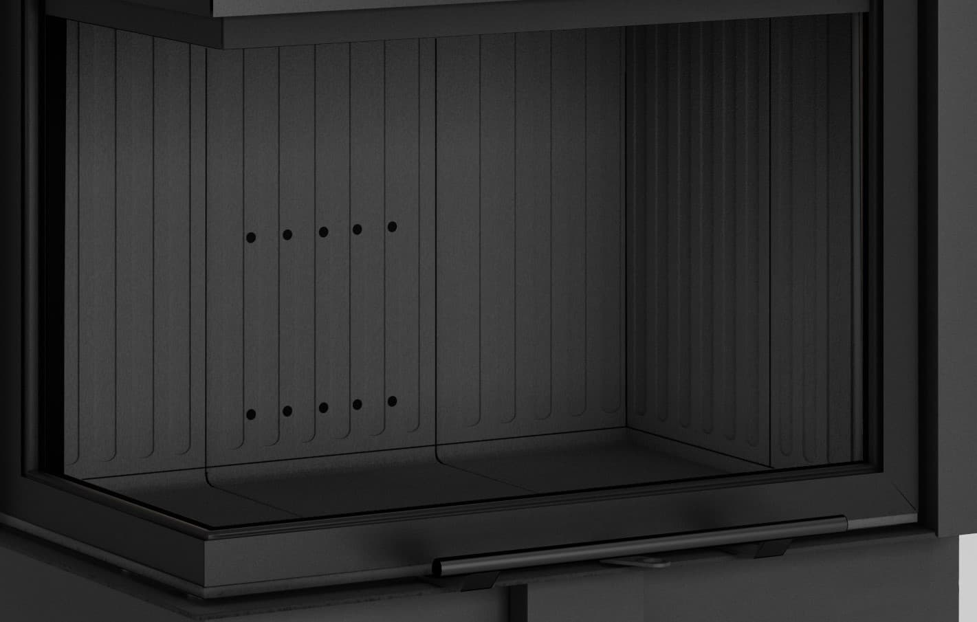 Каминная топка Heatro 81H black - панорамная каминная топка из стали. Оснащена накопительной керамикой стильного черного цвета и надежной системой подъема дверцы.