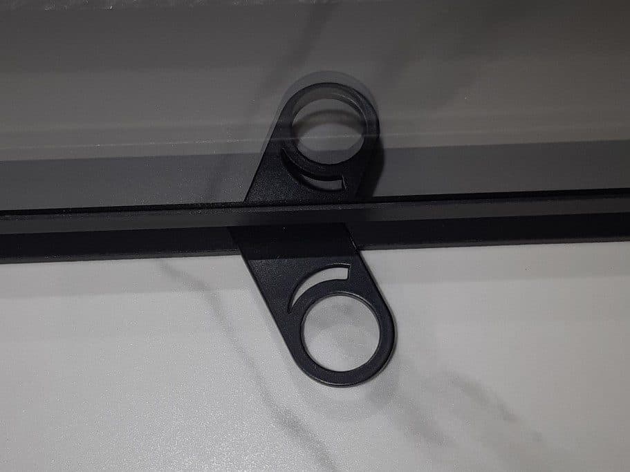 Дверца выполнена в современном стиле «Full Glass» (Полное остекление), в котором видимость стальных элементов сведена к минимуму. Из-за такой формы очаг визуально кажется больше, чем он есть на самом деле. Использована подъемная система "cling", что обеспечивает простоту использования и бесшумное открывание двери вверх.