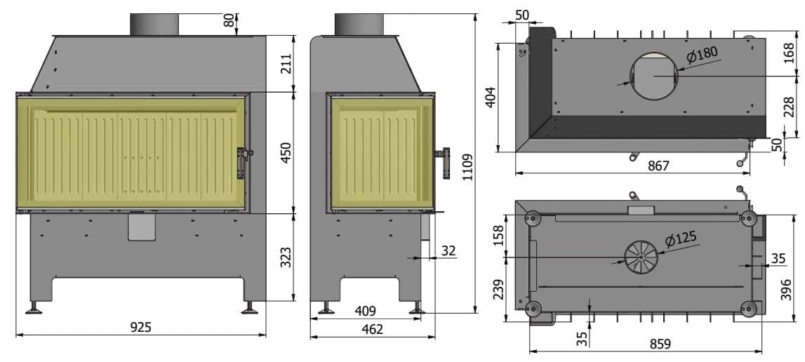 - выход дымохода D-180 мм - совместим с большинством дымоходов