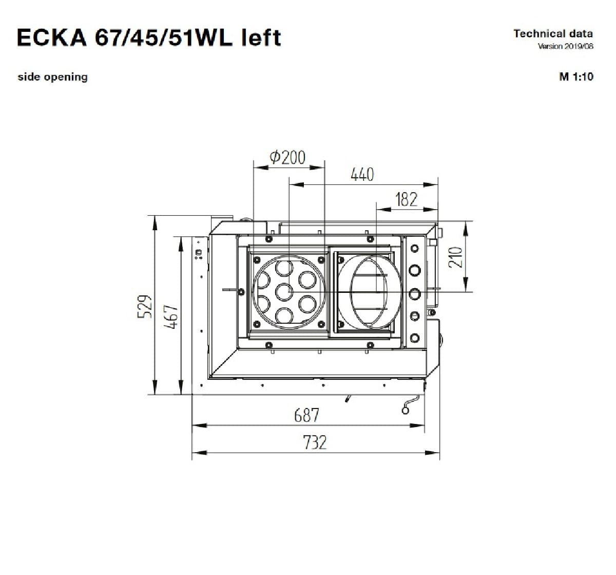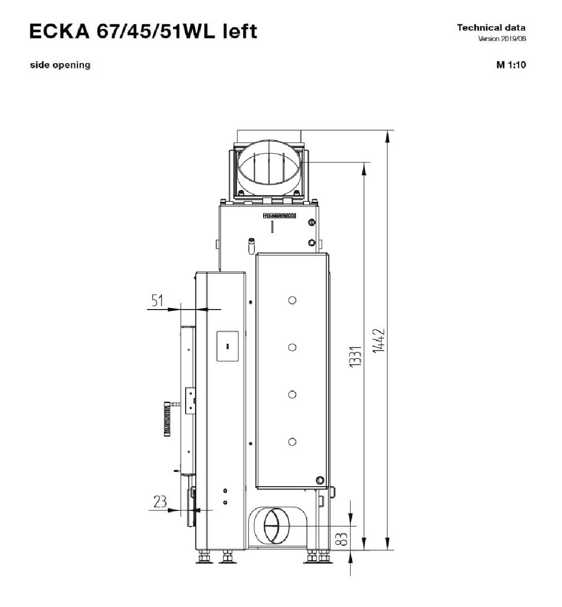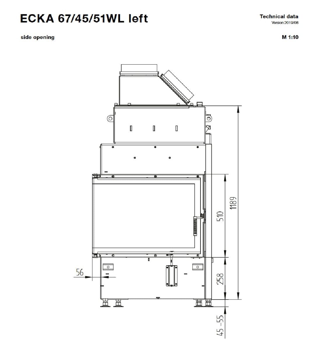 Габаритные размеры Каминная топка ECKA 67/45/51W