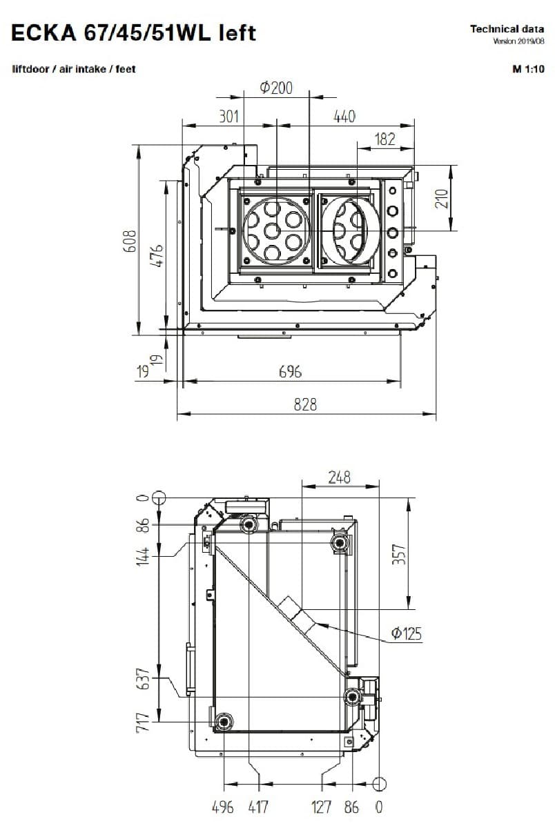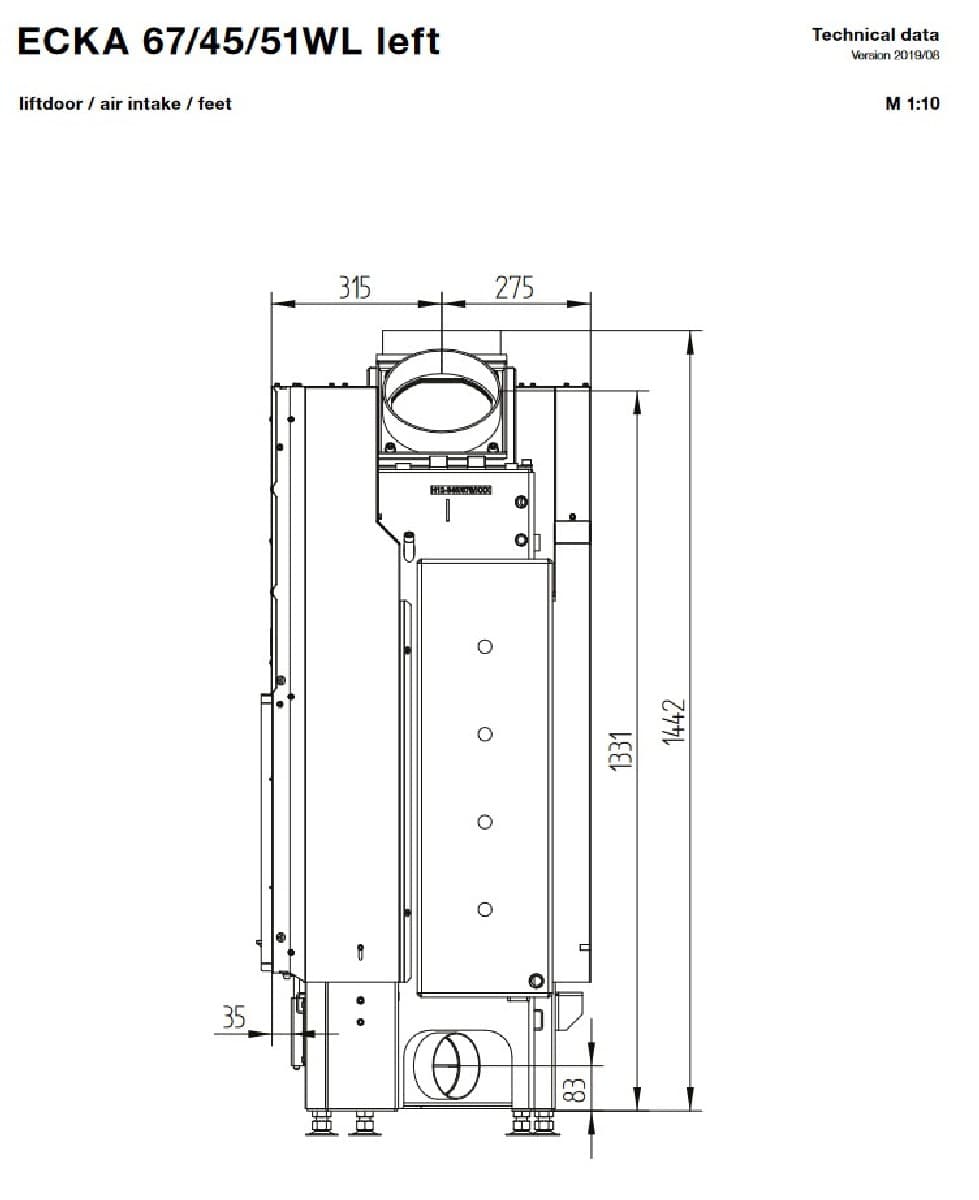 Габаритные размеры Каминная топка ECKA 67/45/51Wh