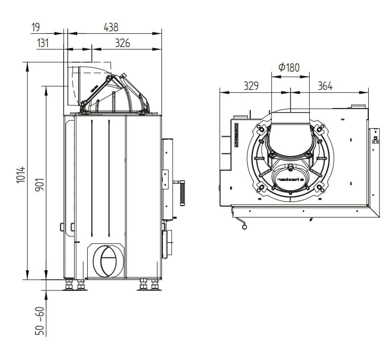 Каминная топка Hoxter ECKA 70/40/38RN Правосторонняя - стальная каминная топка с угловым остеклением и с керамической камерой дожига.