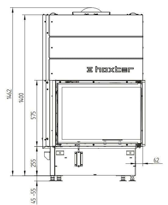 Каминная топка Hoxter ECKA 76/45/57Rh Правосторонняя - стальная каминная топка с угловым остеклением и открыванием дверцы вверх.
