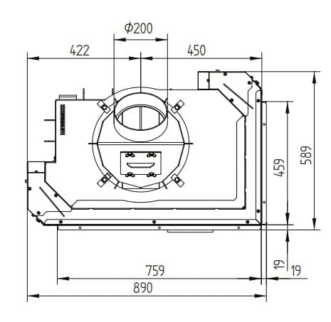 Габаритные размеры Каминная топка ECKA 76/45/57Rh Правосторонняя