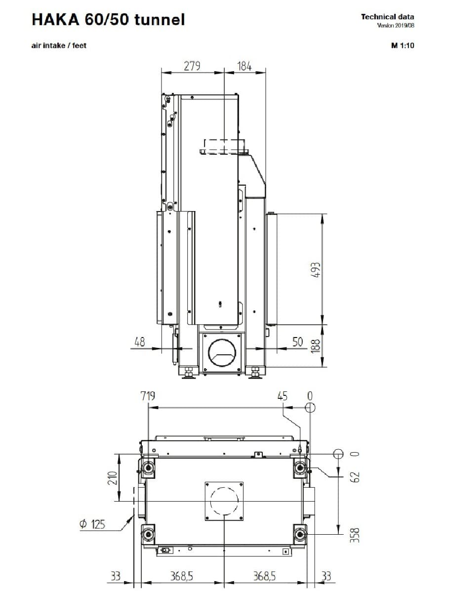 Габаритные размеры Каминная топка Hoxter HAKA 60/50ST