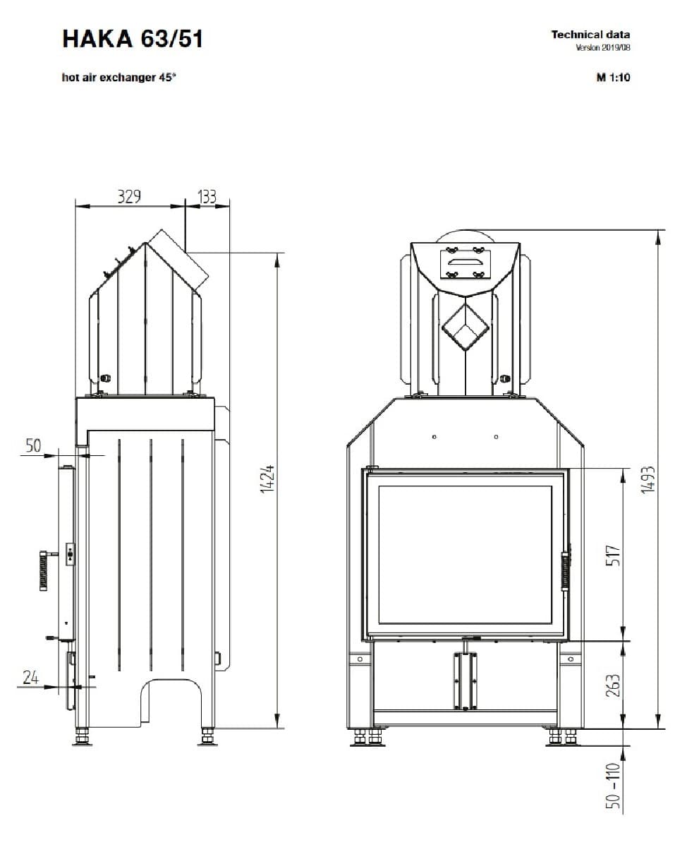 Габаритные размеры Каминная топка HAKA 63/51