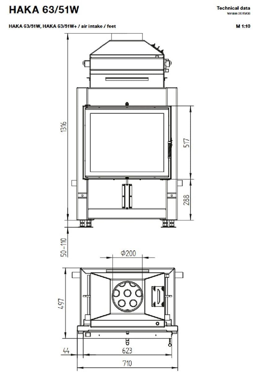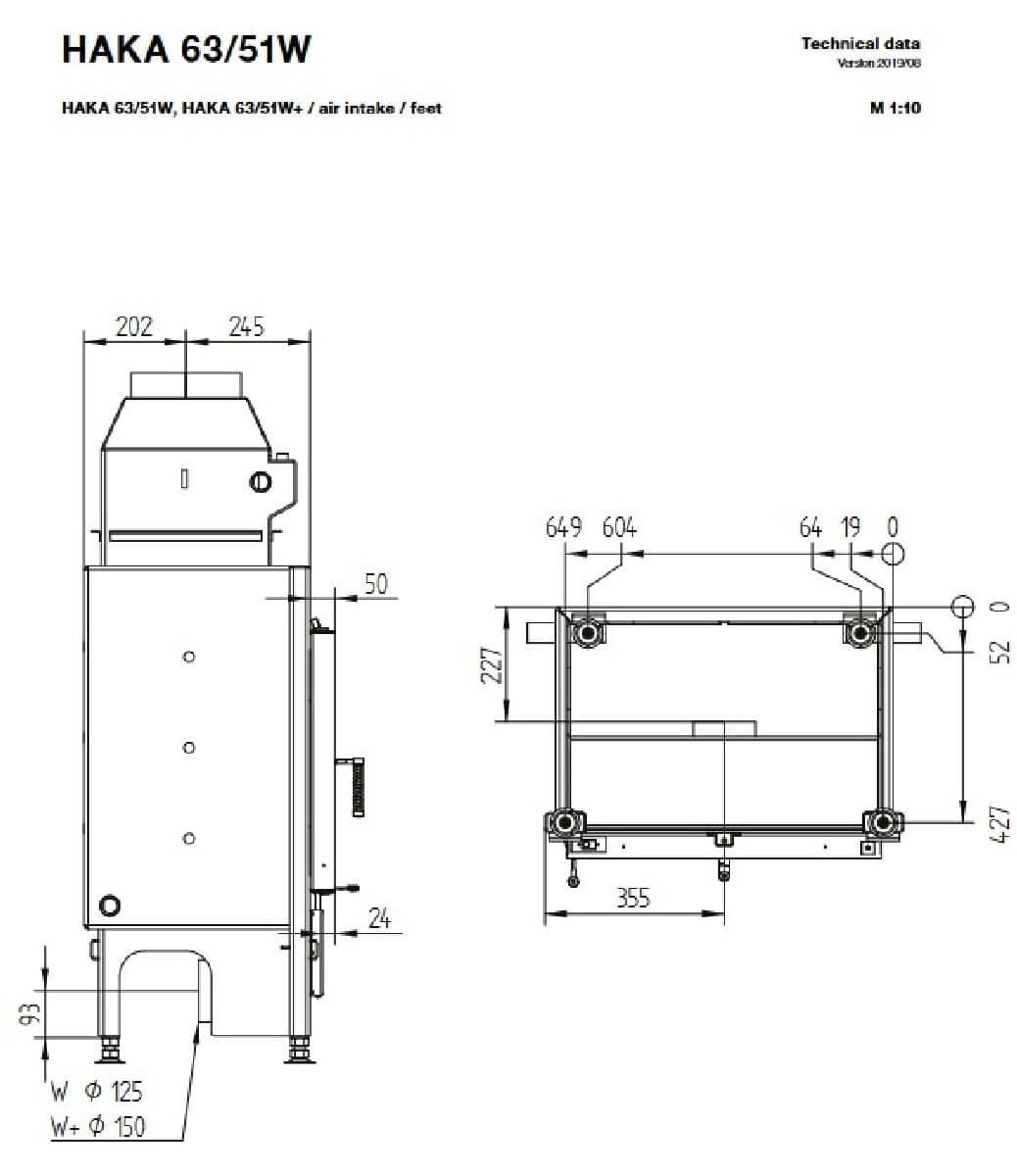 Габаритные размеры Каминная топка HAKA 63/51WI
