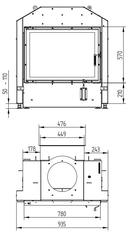 Видимые размеры (размеры дверцы установленной топки): 570x780 мм