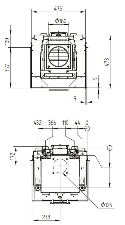 Каминная топка Hoxter UKA 35/45/35/50Sh - трехстороння каминная топка с и уменьшенной глубиной топочной камеры.