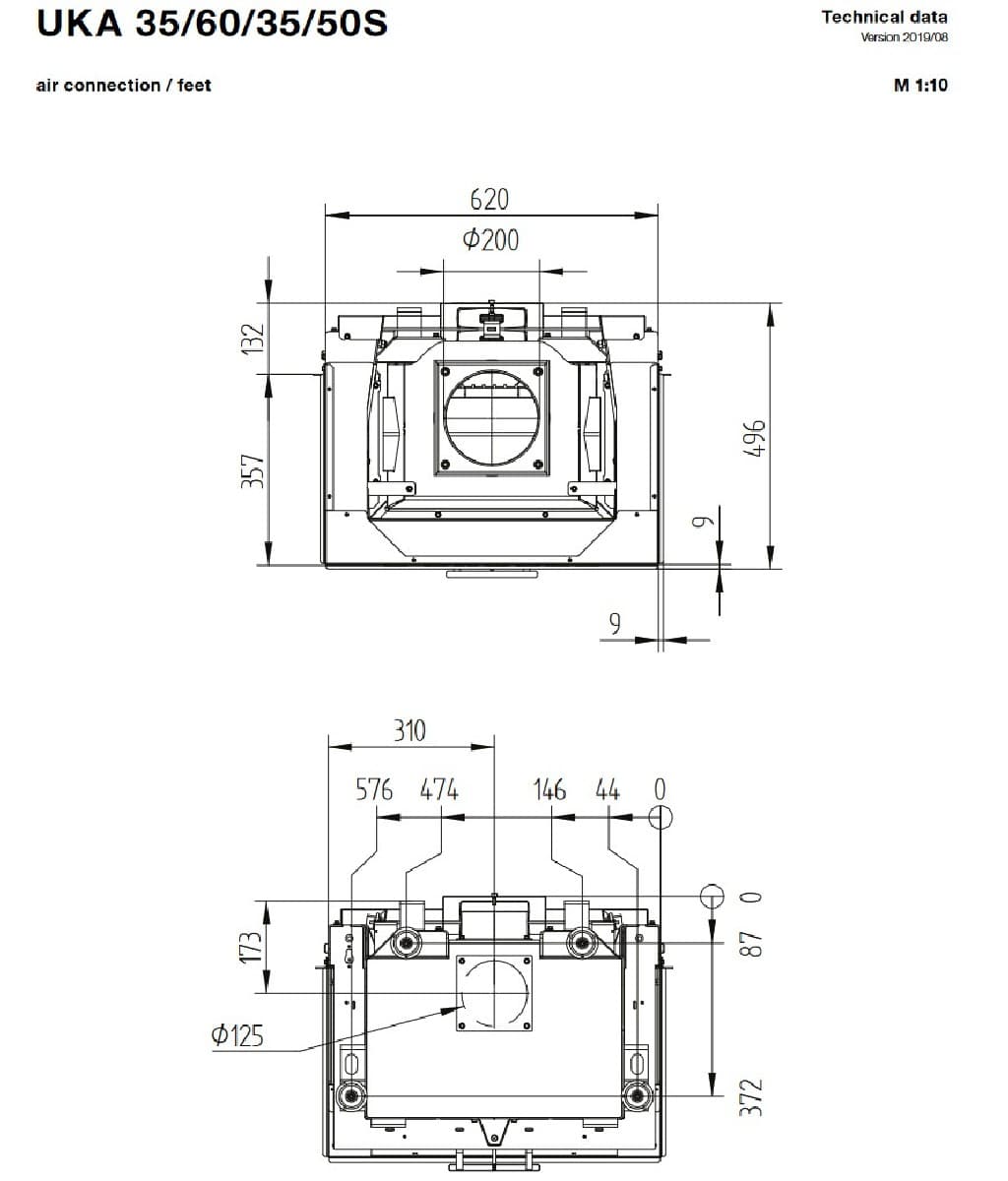 Габаритные размеры Каминная топка UKA 35/60/35/50Sh