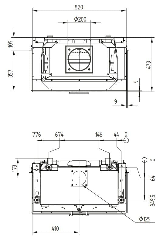 Габаритные размеры Каминная топка UKA 35/80/35/50Sh
