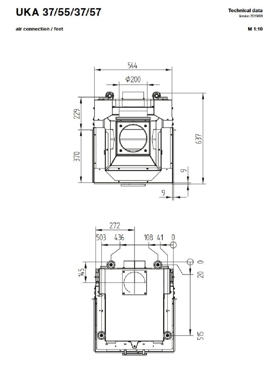 Габаритные размеры Каминная топка UKA 37/55/37/57h