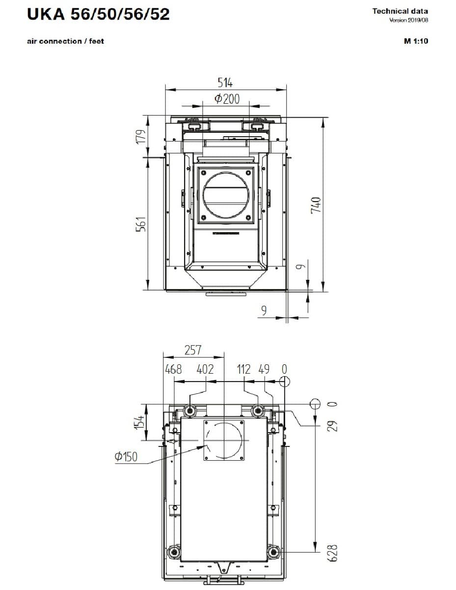 Цена указана за модель UKA 56/50/56/52h с чугунным дымосборником и одинарным остеклением без дополнительных опций.