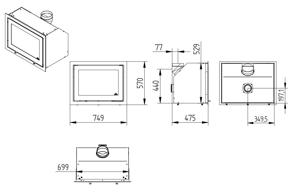 Чертеж каминной топки Jydepejsen H530 Classic: