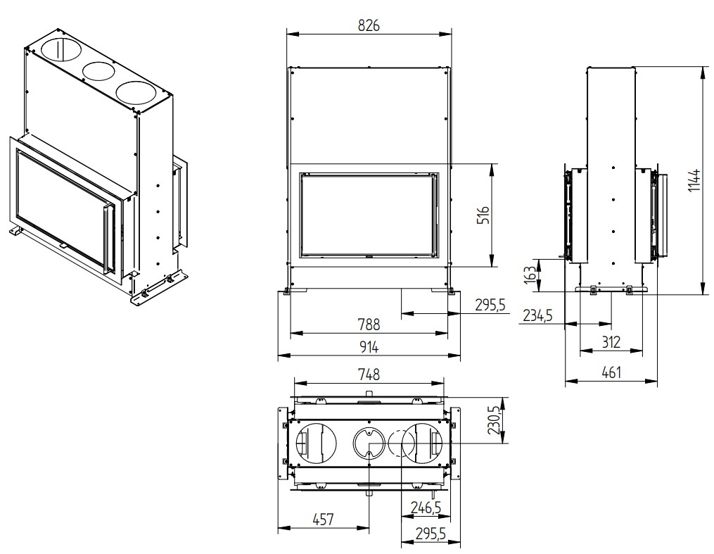 Чертеж каминной топки Jydepejsen Sigma Duplex: