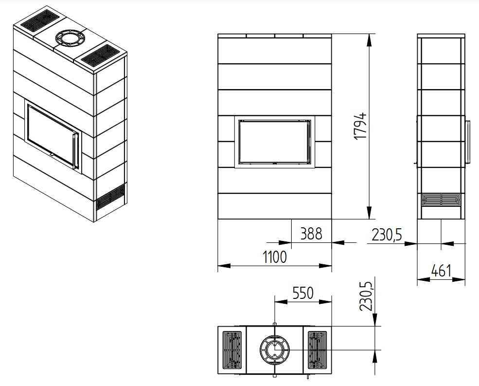 Модель предполагает возможность забора свежего воздуха извне и соединения для теплопередачи.