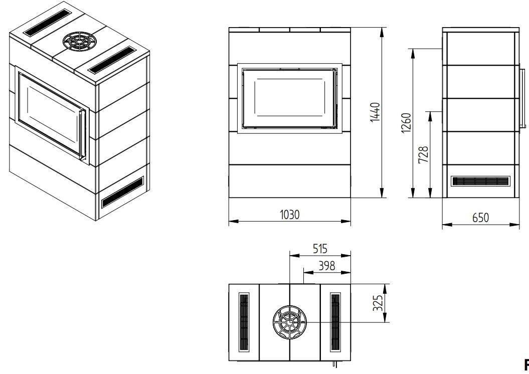 Чертеж каминной топки Jydepejsen Sigma Titan 2: