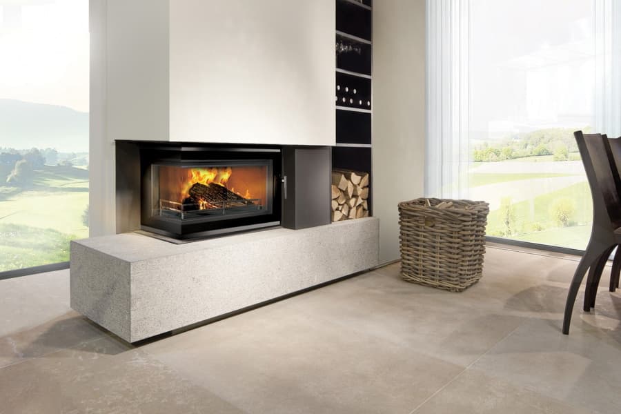 Каминная топка KAWMET W16 LB с угловым правым стеклом без перегородки - используется для отопления домов и помещений, а также как предмет интерьера.