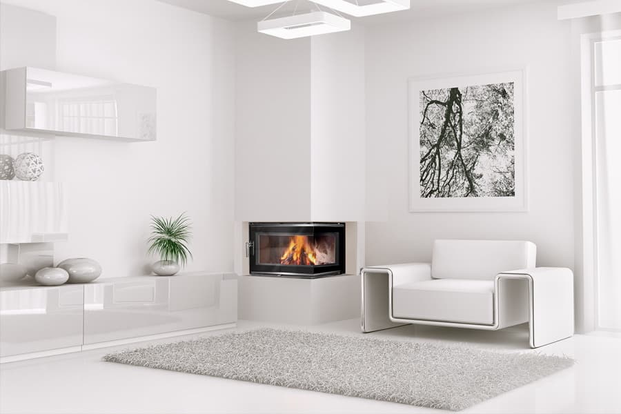 Каминная топка KAWMET W16 RB с угловым правым стеклом без перегородки - используется для отопления домов и помещений, а также как предмет интерьера.