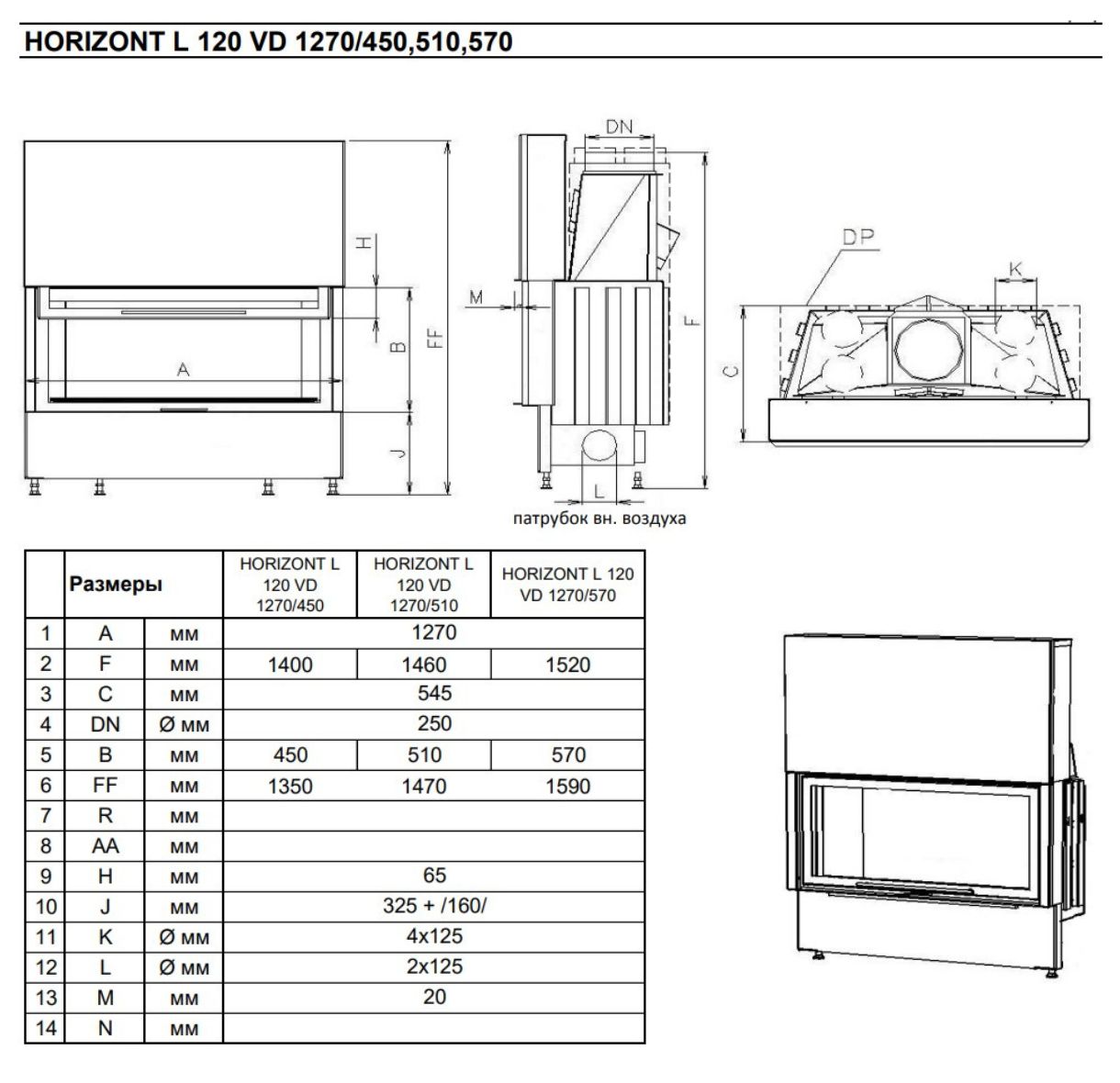 Каминная топка KOBOK Chopok L 120, VD 1270×570 - каминная топка из высококачественной жаропрочной стали с прямым остеклением и открыванием дверцы вверх.