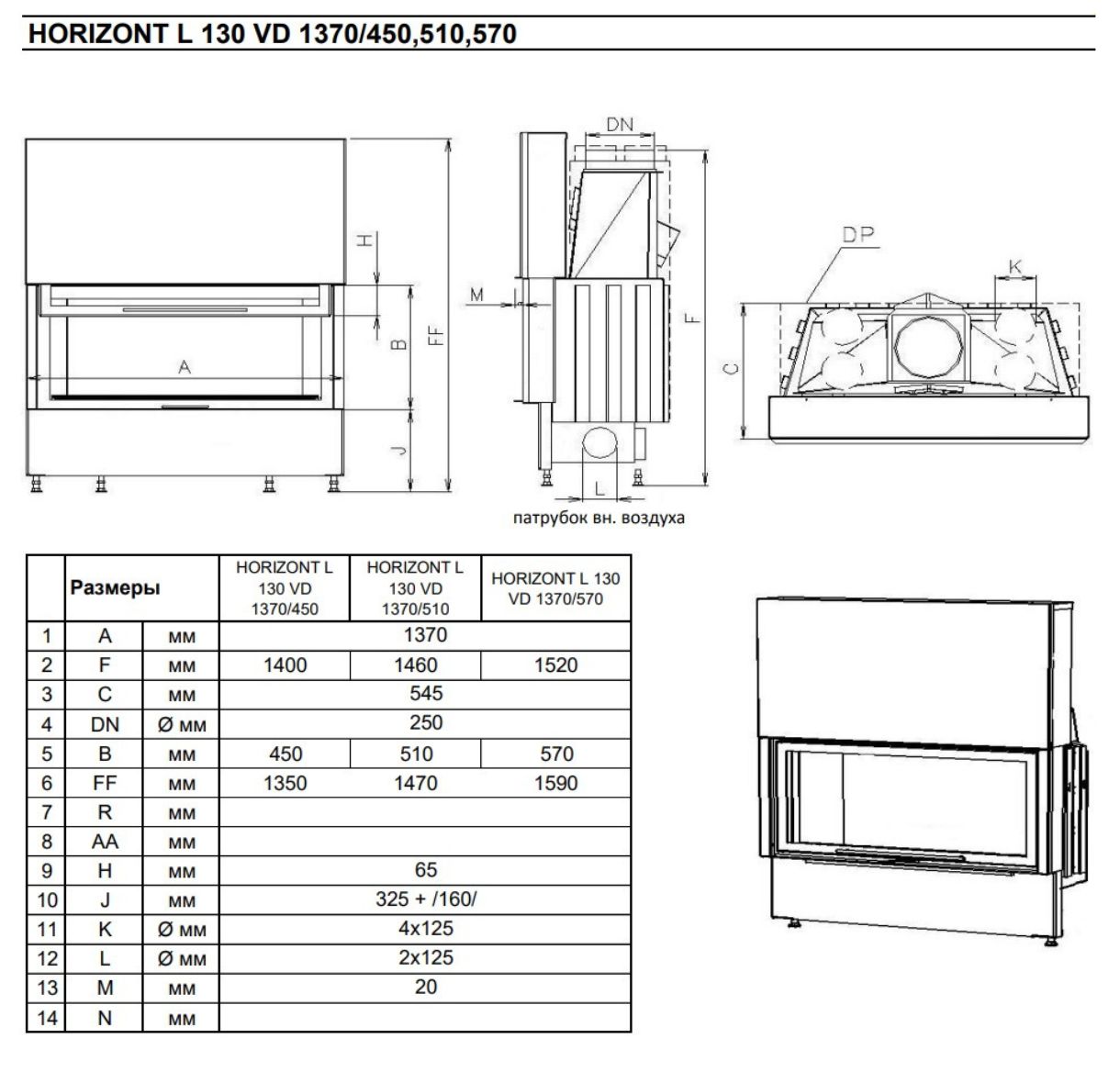 Каминная топка KOBOK Chopok L 130, VD 1370×570 - каминная топка из высококачественной жаропрочной стали с прямым остеклением и открыванием дверцы вверх.