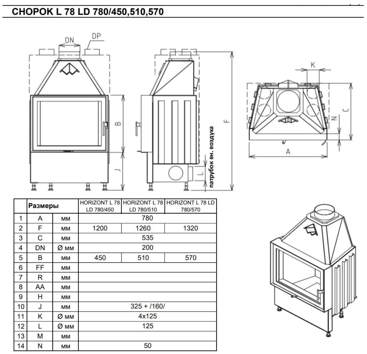 Каминная топка KOBOK Chopok L 78, LD 780×570 производитель Kobok