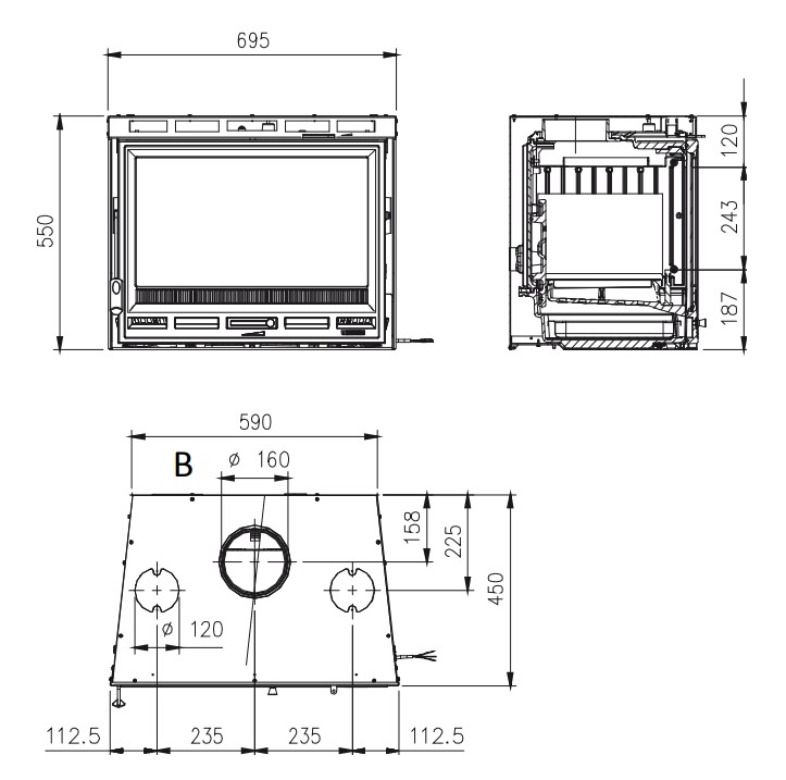 -Дверца изготовлена из высокопрочной стеклокерамики, которая выдерживает температуру до 750°C;