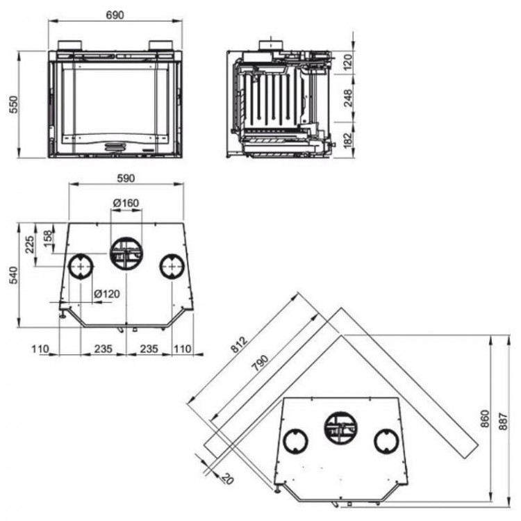 Каминная топка La Nordica Inserto 70 prismatico - высококачественная чугунная каминная топка с системой разводки горячего воздуха в смежные помещения. Имеет стекло призматической формы.
