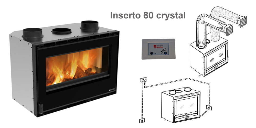 Каминная топка La Nordica Inserto 80 Crystal Evo Ventilato - высококачественная чугунная каминная топка с системой разводки горячего воздуха в смежные помещения.