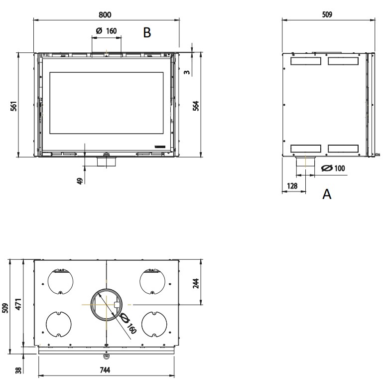 -Дверца изготовлена из высокопрочной стеклокерамики, которая выдерживает температуру до 750°C;