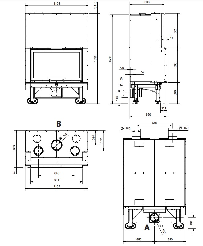 -Экологичность каминной топки обеспечивает система вторичного дожига, которая обеспечивает чистое горение и уменьшает выброс отработанных газов в окружающую среду;