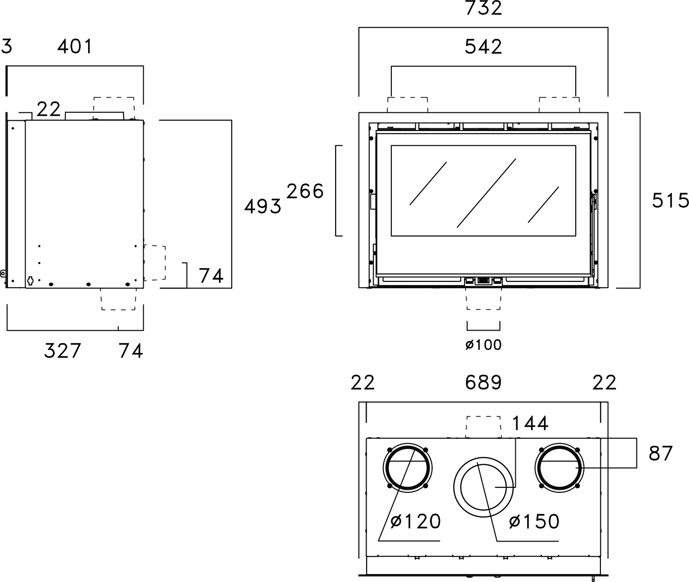 - Диаметр дымохода:150 мм