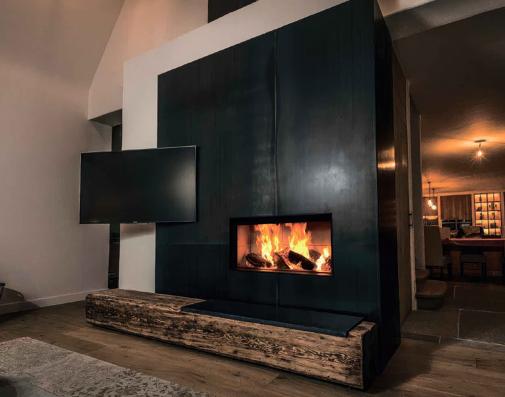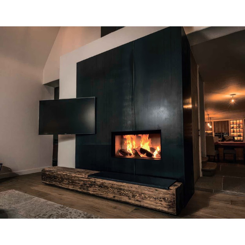 LUNA DIAMOND (+) Wood 1000 H — это встраиваемый горизонтальный дровяной камин с передней подъемной дверцей, предназначенный для интеграции в каминный портал или специальную нишу. Его лаконичный дизайн из черного металла и керамического стекла позволяет создать бесшовную и современную отопительную систему. Модель предлагает полную индивидуальную настройку за счет выбора декоративных рамок для идеального сочетания с отделкой интерьера.