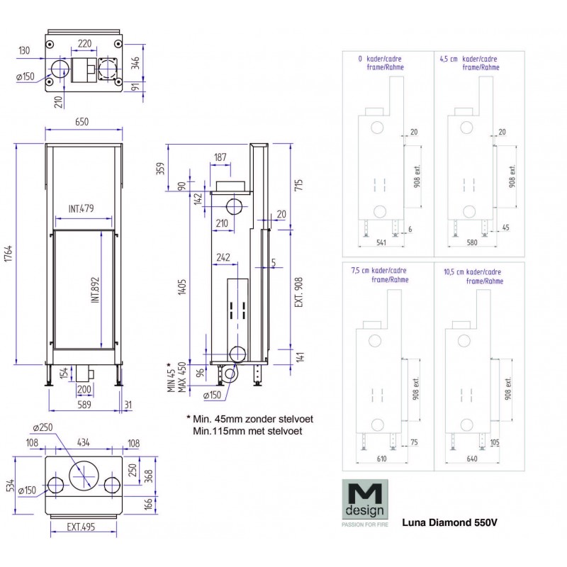 Каминная топка Luna 550 V Diamond Plus производитель M-Design